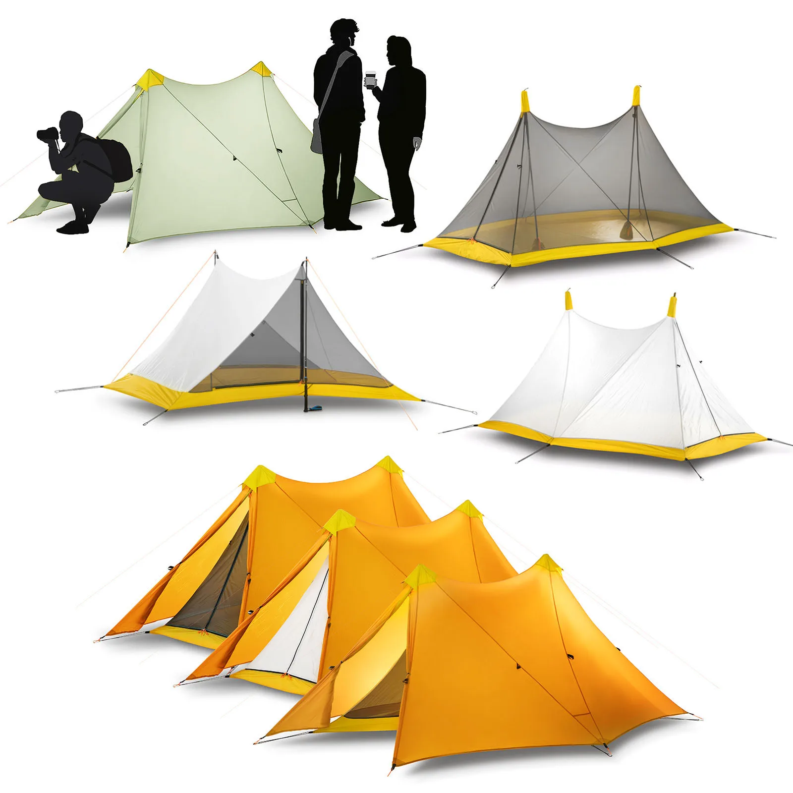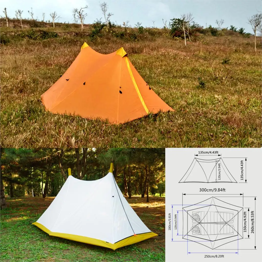 Good Product 1.4kg Ultralight 2 Person 4 Seasons Camping Tent Nylon Silicon Coated Rodless 2-tower Large Tent 57